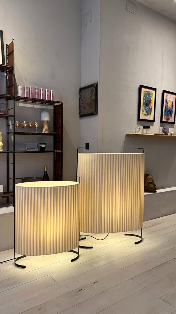 La lámpara AMID está diseñada para generar distintos ambientes en un mismo espacio a través de la luz, como si fuese un biombo, que crea una atmósfera acogedora e intimista.