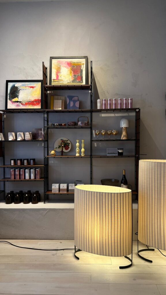 Al entrar a La Cabinet se puede contemplar una exposición pequeña, una cuidada selección de producto: piezas artesanales, objetos decorativos y cotidianos respetuosos con el medio ambiente. También antigüedades, piezas cerámicas de diseño contemporáneo, joyería artesanal e incluso artículos con un proyecto social detrás. Todo ello acompañado por las lámparas decorativas cedida por Ramqui, gracias a las cuales se crea un ambiente muy especial.